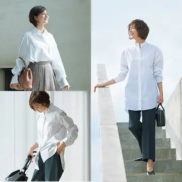 大人女性が敬遠しがちな、ふわふわの素材や甘いリボン。清潔感が漂う白をセレクトすれば、素材もディテールも大人の味わいに。富岡佳子さんが着こなす「白」コーデをご紹介。