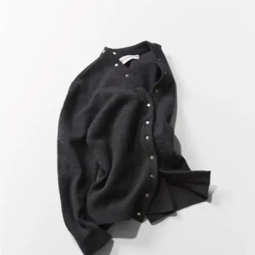 薄手カットソーの上に、シャツ、ニットカーディガン、ジャケットと4枚を重ねた上級者スタイル。「色のトーンを統一するのが、無理なく上手にレイヤードする秘訣。アウターは重ね着前提でビッグシルエットを選ぶことが多いですね」。この日もメンズのジャケットを。