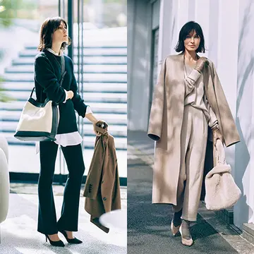 キープ。パンツ¥42,900/ミューズ ドゥ ドゥーズィエム クラス 六本木店(ドゥーズィエム クラス) ニット¥33,000 /スローン シャツ¥48,400 /エスケーパーズオンライン(ブーリエンヌ) ジャケット¥49,500/ウィム ガゼット 青山店(ウィム ガゼット) ネックレス¥25,300 /ショールーム セッション(マリハ) ★バッグ¥64,900/エクラプレミアム通販(徳原文子×Elleme) 靴¥52,800/アマン(ペリーコ)