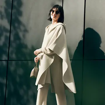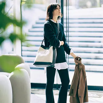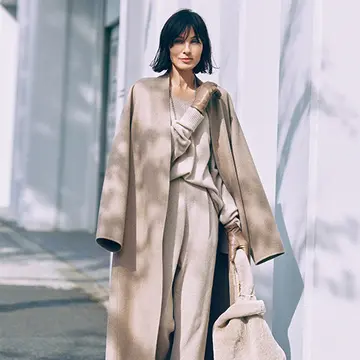 ★パンツ¥33,000/エクラプレミアム通販(戸野塚かおる×SLOANE) コート¥38,940/アンクレイヴ ニット¥46,200/エイトン青山(エイトン) メガネ¥33,000/アヤメ ストール¥24,000/ノーク(ノーク バイ ザライン) バッグ¥158,400 /ピエールアルディ 東京(ピエール アルディ) 靴¥34,100 /エクラプレミアム通販(徳原文子×D.A.T.E)