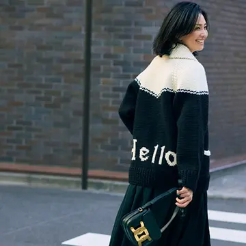 単体でも使える、主役級の「黒小物」をスタイリスト・福田亜矢子さんが厳選。顔まわりに華やかなを加えてくれるストールと、足もとにリッチ感を宿してくれるローファーを紹介。