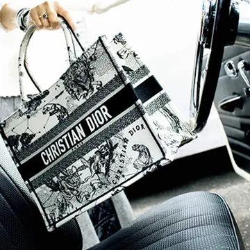 春の定番アイテム「トレンチコート」にあわせたい、「ディオール」のカナージュ(格子柄)バッグ。クラス感はもちろん、洋服やシーンにあわせてストラップの調整もできて、使い勝手も抜群!