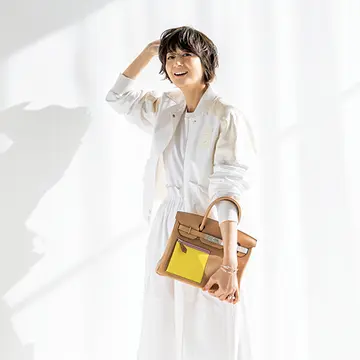 撮影/YUJI TAKEUCHI(BALLPARK) ヘア&メイク/野田智子 スタイリスト/福田亜矢子 モデル/富岡佳子 取材・原文/松井陽子 ※( )内の数字は編集部で計測したバッグのサイズで、(縦×横×マチ)、単位は㎝です ※エクラ2022年3月号掲載