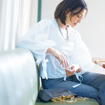 昨年よりさらにバリエーションが豊富になった袖コンシャスなブラウス。袖口のレースで華やかに見せつつ、袖のボリューム感で二の腕をカバー。この春はディテールに凝った白ブラウスを取り入れて。