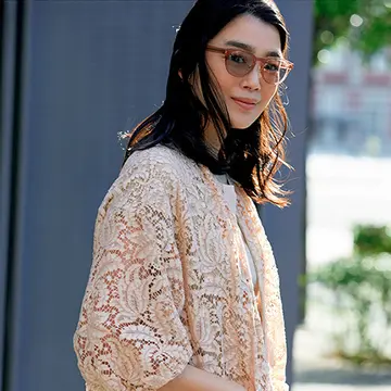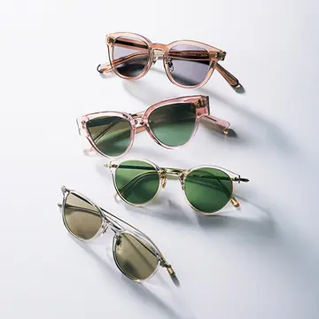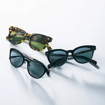 ジャケットやシャツには、黒やべっ甲柄などのトラディショナルなフレームのサングラスがちょうどいい。古く見えないよう、太めで存在感のあるものやキャットアイなどどこかに遊びが効いたデザインが今っぽさに直結。もちろんレンズは淡色で。