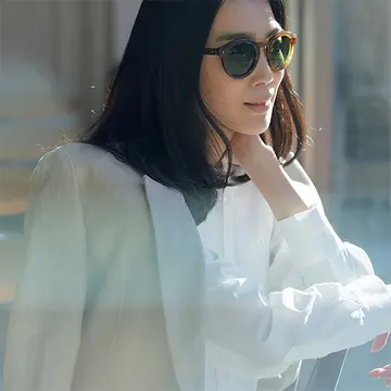 「肌なじみのよいカラーを選ぶと季節を問わず活躍。セルフレームもメタルフレームも主張しすぎないボストンタイプを、レンズはライトカラーが鉄板です」(三島さん)