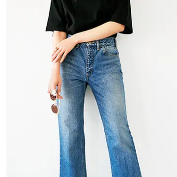 アラフィー世代におすすめなのは、「シルエットがきれいで脚長効果や体型カバー力がありつつも、時代のムードをまとったこなれ感あるデニム」。ブルー以外の選択肢が格段に増えたのも朗報。〇〇色とひと言で表現できない秀逸カラーや、定番の白や黒もニュアンスを帯びたカラーリングで大人のおしゃれを後押し。