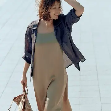シャツ(同素材のショートパンツとセット)¥42,900/アマン(アンスクリア) タンクトップ¥7,150/ボウルズ(ハイク) パンツ¥38,500/カオス丸の内(カオス) ネックレス¥46,200/エスケーパーズオンライン(ハルポ) バッグ¥47,300/ピエール アルディ 東京(ピエールアルディ) 靴¥88,000/ブルーベル・ジャパン(クレジュリー)