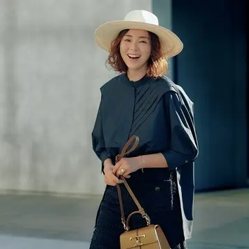 シャツワンピース/上と同じ ニット¥25,300/ビームス ハウス 丸の内(スローン×デミルクス ビームス) パンツ¥29,700/エイチ ビューティ&ユース(ロエフ) 帽子¥33,000/ドゥロワー 丸の内店(ヴァンパルマ) ピアス¥29,700・ブレスレット¥77,000/マリハ バッグ¥198,000/エリオポール代官山(ザンケッティ) 靴¥29,700/アマン(ペリーコ サニー)