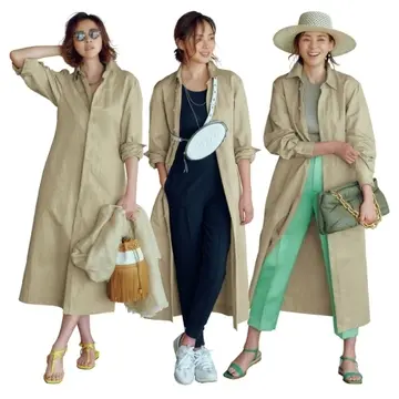インナーと小物合わせのアイデア次第で、シャツワンピースの着こなしはこんなに気軽に楽しめる! 今回はアースカラーコーデの明度をアップする白シャツワンピと、白コーデの清潔感をキープするブルーのシャツワンピをご紹介。