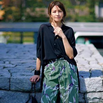 パンツ¥28,600/アストラット 新宿店(アストラット) ニット¥49,500/ドゥロワー 二子玉川店(ドゥロワー) トップス¥11,000/ユナイテッドアローズ 原宿本店(ロエフ) ピアス¥24,200/ボウルズ(ハイク) バングル¥72,600/リューク バッグ¥322,300/ロジェ・ヴィヴィエ・ジャパン(ロジェ ヴィヴィエ) 靴¥105,600/ジャンヴィト ロッシ ジャパン(ジャンヴィト ロッシ)