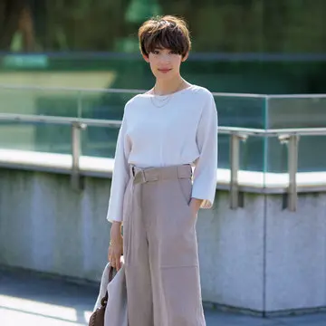 こなれて見える、すそが特徴の「絶品パンツ」をピックアップ。ノークのタックパンツはすそベルト付きで、トップスに合わせてシルエットを調整できるのがポイント。着こなしをベストバランスに見せてくれる。