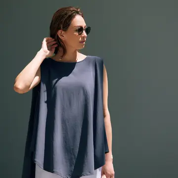 薄着の季節はコーディネートだけでは体型がカバーしづらい。そんなエクラ世代ならではの悩みを解決するのが、まとうだけで二の腕と丸い肩をほっそり見せてくれる「進化系ノースリーブ」! 今回は、パンツとの最旬コーディネート例をご提案。