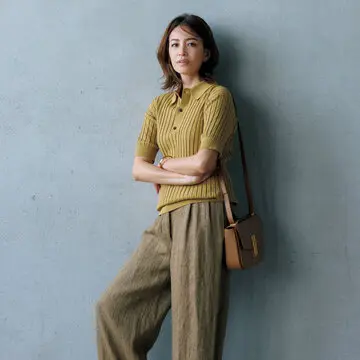 ノースリーブシャツ¥23,100/インターリブ(サクラ) パンツ¥20,900/デ・プレ ネックレス¥26,400/room3138(ローラ ロンバルディ) バッグ¥168,300/ピエール アルディ 東京(ピエールアルディ) 靴¥18,700/オデット エ オディール 新宿店(ソレル)