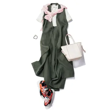ジレ¥137,500(ポステレガント)・ネックレス¥41,800(ソフィー ブハイ)/以上エスケーパーズオンライン シャツ¥20,900/ユナイテッドアローズ 六本木ヒルズ店(ユナイテッドアローズ) パンツ¥30,800/ザ ストア バイシー 代官山店(コキュカ) 帽子¥7,920/アマン(プロタゴニスタ) バッグ¥64,900/マッキントッシュ 青山店(マッキントッシュ × ポーター) 靴¥97,900/セルジオ ロッシ カスタマーサービス(セルジオ ロッシ)