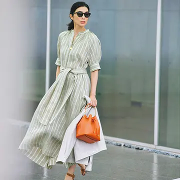 ワンピース¥132,000/ドゥロワー 二子玉川店(ドゥロワー) ピアス¥53,900/エスケーパーズオンライン(ソフィー ブハイ) バッグ¥204,600/ジミー チュウ