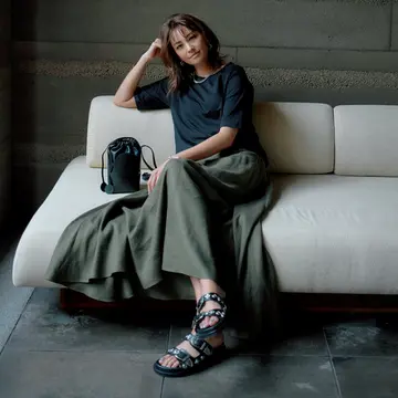 この夏、カーキはぐっと大人っぽく軽やかに進化。着こなしの鮮度が上がり、気分もリフレッシュできるから、ぜひ取り入れてみて。朝もやのかかった森のような色・フォレストカーキの着こなしを、スタイリスト・村山佳世子さんが提案。