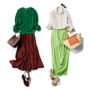 アースカラーに華やかさを加えるなら、夏の日射しに似合うイエローが最強。2点以上投入するとしゃれ見え効果抜群! センスのいい新鮮な配色で、お出かけ気分を盛り上げる着こなしを、スタイリスト・村山佳世子さんが提案。