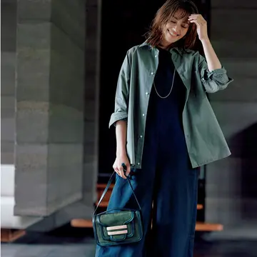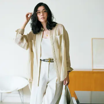 日射しの下でも、ひんやり室内でも、こなれ見え確実! 今年こそ手に入れたいのは、そんなセンスのいいはおりもの。アウター感覚ではおれる透け感シャツは、バンドカラータイプを選ぶとすっきりとした印象。辛口カーキでマニッシュに決めて。