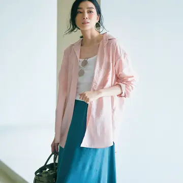 夏コーデのマストハブなはおりもの。カーディガンを選ぶなら、涼しげな素材やゆったりとしたサイズ感を基準に。ドゥーズィエム クラスの一枚は、前下がりでなめらかな落ち感が特徴。サラッとはおれ、優雅な雰囲気に。