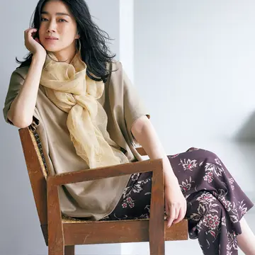 ストール¥19,800/アイネックス(アソース メレ) ブラウス¥27,500・パンツ¥36,300/サードマガジン バッグ¥64,900/アパルトモン 青山店(デメリエー ロンドン)