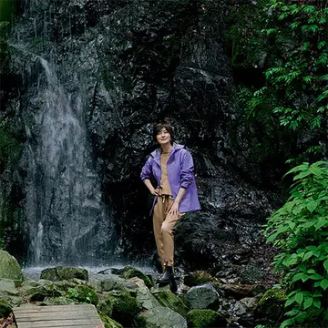 トップス¥30,800・パンツ¥36,300/ボウルズ(ハイク) ピアス¥66,000/トーカティブ表参道(トーカティブ) ネックレス¥17,600/ショールーム セッション(マリハ) 靴¥54,890/ビルケンシュトック・ジャパン カスタマーサービス(ビルケンシュトック) ブランケット/施設備品