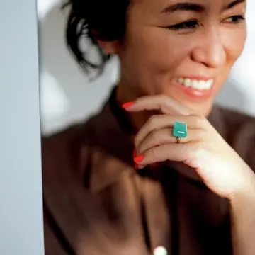 「1〜2年前に出会い、以来リピートしています。とにかく歩きやすい! なんでもないようで、レザーのカット具合などが絶妙に今っぽい。例えば5年着ているお気に入りのワンピース。きれいめな靴を合わせていたのなら、これにスイッチするだけで確実に今の着こなしに引き寄せてくれるんです。少しプリミティブなのだけれど、履くととてもエレガント。それも魅力です」