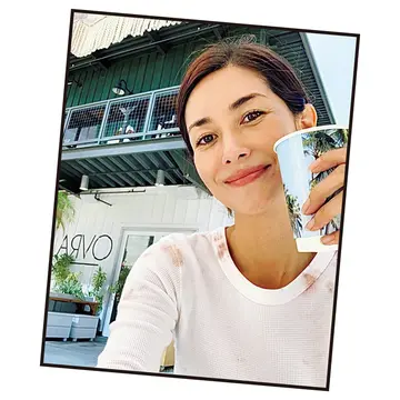 コラボの打ち合わせで最初にブレンダが「絶対にこの色で作りたい!」と決めたのがこちらのブルー。「明るくてポジティブな気分にさせてくれる。それでいて大人も気負わず、リゾートでもタウンでも楽しめる!」。ストラップの長さを変えて、Tシャツと重ねるレイヤードもできるデザインに。