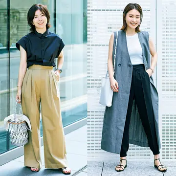 「色を着るときは、上質なものを選ぶように心がけます。このパンツは色と素材も秀逸で肌なじみがいいのも高ポイント。色を足さずに白いジレでクリーンにまとめました」。