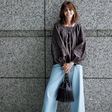 ジル サンダーのシャツブラウスは、シンプルなのにトレンド感のある絶妙なデザインが素敵で、毎シーズンチェックしています。コットン混ビスコース生地にフレンチノット刺繡が施されたこのスモックブラウスは、クラフト感とモダンなシルエットのバランスにひと目惚れ。(編集T)