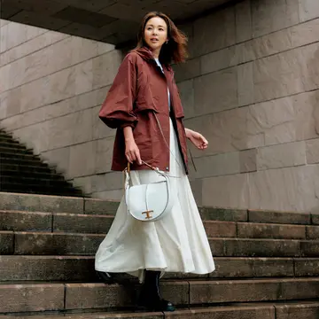 ブルゾンときれいめなアイテムを合わせるだけでムードが出せるコーデをスタイリスト・村山佳世子さんが指南。「素材もデザインもカジュアルなブルゾンは、明るい色のワイドパンツやスカーフできれいめに。ワンランク上のおしゃれをしたい日にぴったりのバランスです」