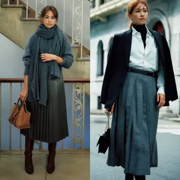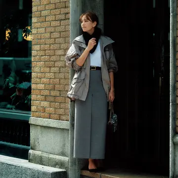 この秋、注目を集めているのが、シルエットにシャープさがある辛口タイプのスカート。鮮やかなピンクのボックスタイトスカートは、ボリュームのあるアウターと組み合わせてメリハリを。