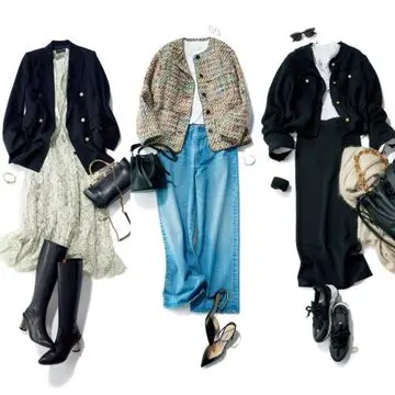 ジャケットよく着てますよね、といわれます。実際はおるだけで着こなしがまとまるし、前を開けたりボタンをいくつか閉じたり……と、自分らしいおしゃれを楽しめるジャケットは、私にとって安心できるアイテム。いつもスーツケースに一着は入れてしまいます。これまで数えきれないほど着てきましたが、最近はオーバーサイズのものや遊びがあるものも積極的に取り入れたいと思うようになりました。50代になっても、まだまだ新しい着方にチャレンジできる自由さがあるところも、やっぱり好きです。