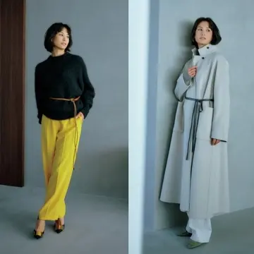 「ベルト」でおしゃれが見違える!と流行のきざしを見せているベルトコーデ。ウール素材のセットアップには、細めの黒のレザーベルトをプラスして、冬のおしゃれをこなれさせて。