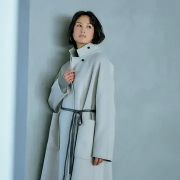 レザーのロープベルトでボリュームニットの着こなしに新しいバランスが生まれる