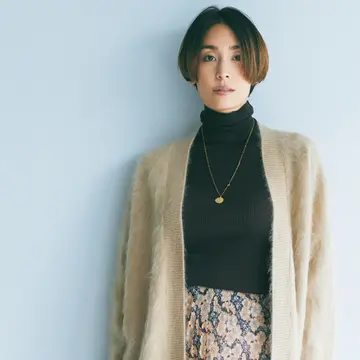 透け感で大人の色気を加えれば、マニッシュになりがちな黒タートルも女らしい。リブなしだからボディラインを拾いすぎず、中にキャミソールを重ねてエレガントな透けを楽しむのもいい。今季らしいたたずまいの本命ニット。