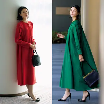 特別なお出かけ時に頼れるのは、上質かつスタイルのあるきれい色のワンピース。オーラリーの一着は、甘さひかえめのピンク&リュクスなデザインがこだわり。鮮やかカラーでも大人っぽい着こなしが完成。