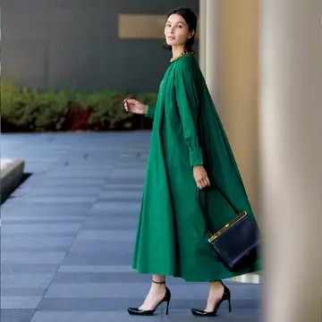 “ここぞ”のときに頼れるのは、上質かつスタイルのある「きれい色」のワンピース。鮮やかなカメリアレッドが映えるヨーコ チャンのワンピースなら、お出かけをもっと華やかで特別なものに!