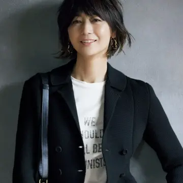 鎖骨が美しく見えるVゾーン、腕をきれいに見せる3ボタン袖口のロングスリーブ、こだわりのウールシルク素材など、オケージョンシーンでもエレガントなオーラを放つ「バー」ジャケット。クラシカルなダブルブレストジャケットとロングスカートのコーディネートは、オールブラックでも優雅な華が。