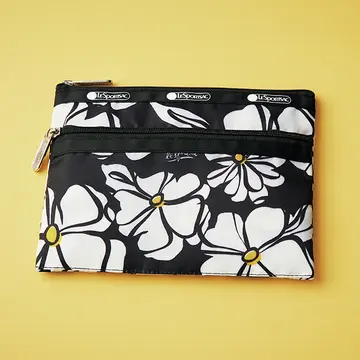 そして特別付録は、レスポートサックと集英社女性誌コラボ第3弾!「大人の花柄ポーチ」です。コンパクトなバッグにも使いやすいサイズ感(縦15×横20.5cm)。黒地に白の花びらが浮かび、イエローがアクセントに(※柄の出方には個体差があります)。Wファスナーで2か所に収納できるので、使い方も自在。売り切れ前に、ぜひ手に入れてくださいませ。