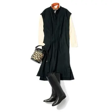 ほんのりツヤ感のある素材は伸縮性のあるジャージー素材で、見た目のエレガントさに反してとても着心地よく仕上がっています。高め位置に設定されたウエスト切替、腕が長く見えるベルスリーブなど細部にわたってTHIRD MAGAZINEのデザイン性の高さが光る1枚。肩部分はファスナーがついており肌見せもできる優れもの。シーンに合わせて色々な着こなしが楽しめるのも嬉しいポイントです。こんなブラックワンピースを1枚持っていれば色々なシーンで活躍すること間違いなし!