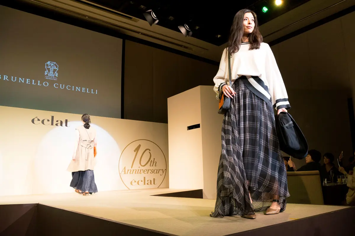 ブルネロ クチネリ、ジョルジオ アルマーニ、マックスマーラという人気の3ブランドで構成された今回のショー。それぞれの世界観が表現されたイチ押しアイテムが披露されました。プロのモデルさんが出演するショーを、こんなに間近で観られる機会はそうないもの。客席には各アイテムの詳細が書かれたリリースが配られており、それを観ながらの観賞はまるでフロント・ロウにいるような気分!おしゃれには常にアンテナを張っているJマダム、ランウェイを見つめる熱のこもった眼差しも印象的でした。