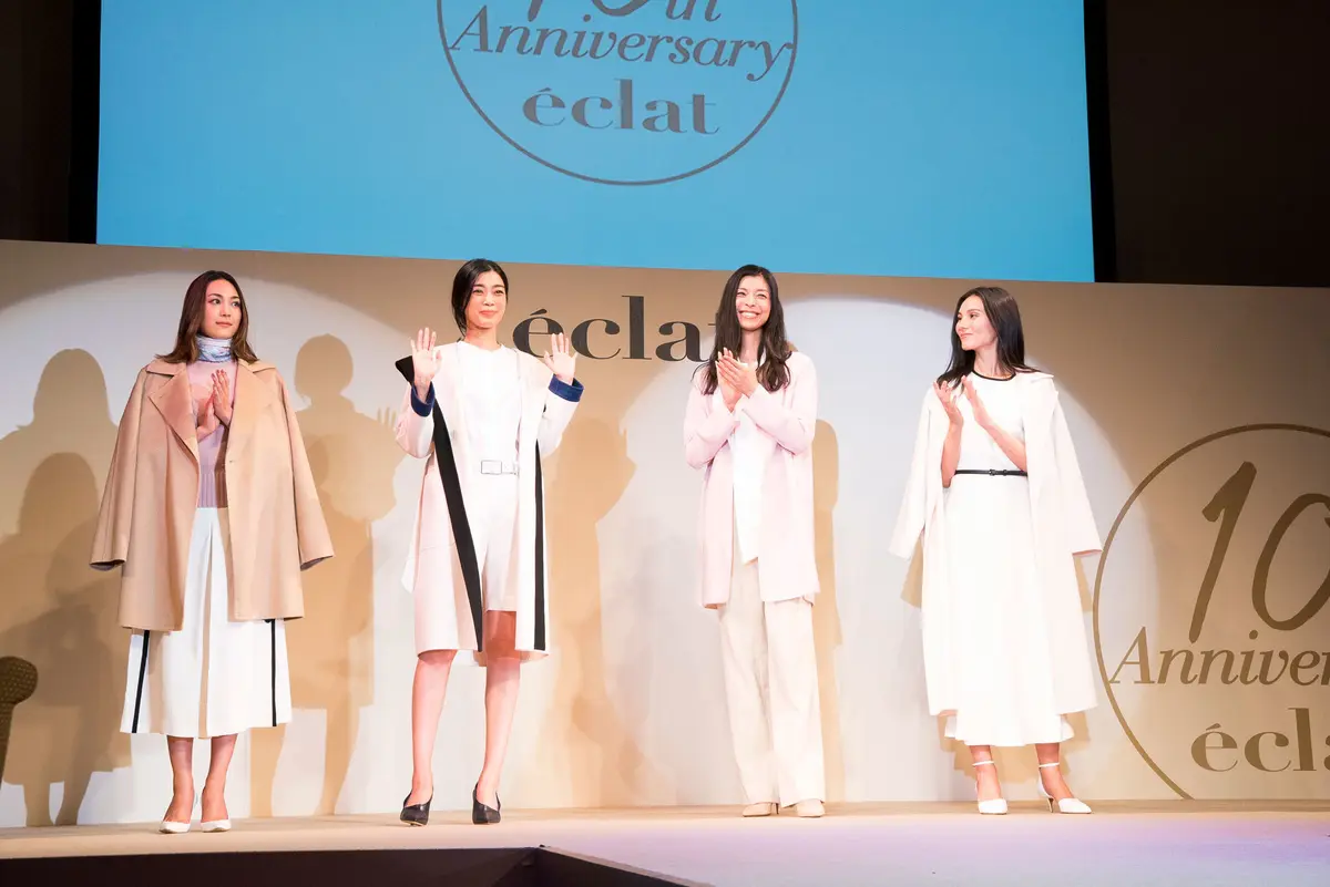 トークショーとあわせてこの日のもう一つのメインだったのが、人気ブランドによるフロアショー。ランウェイにはおなじみのエクラモデル、生方ななえさん、田沢美亜さん、ゆうきさん、LIZAさんの4名が登場し、誌面とは違った美しさを見せてくれました。普段なかなか味わうことのできない熱気と臨場感に包まれたショーの様子をレポート。