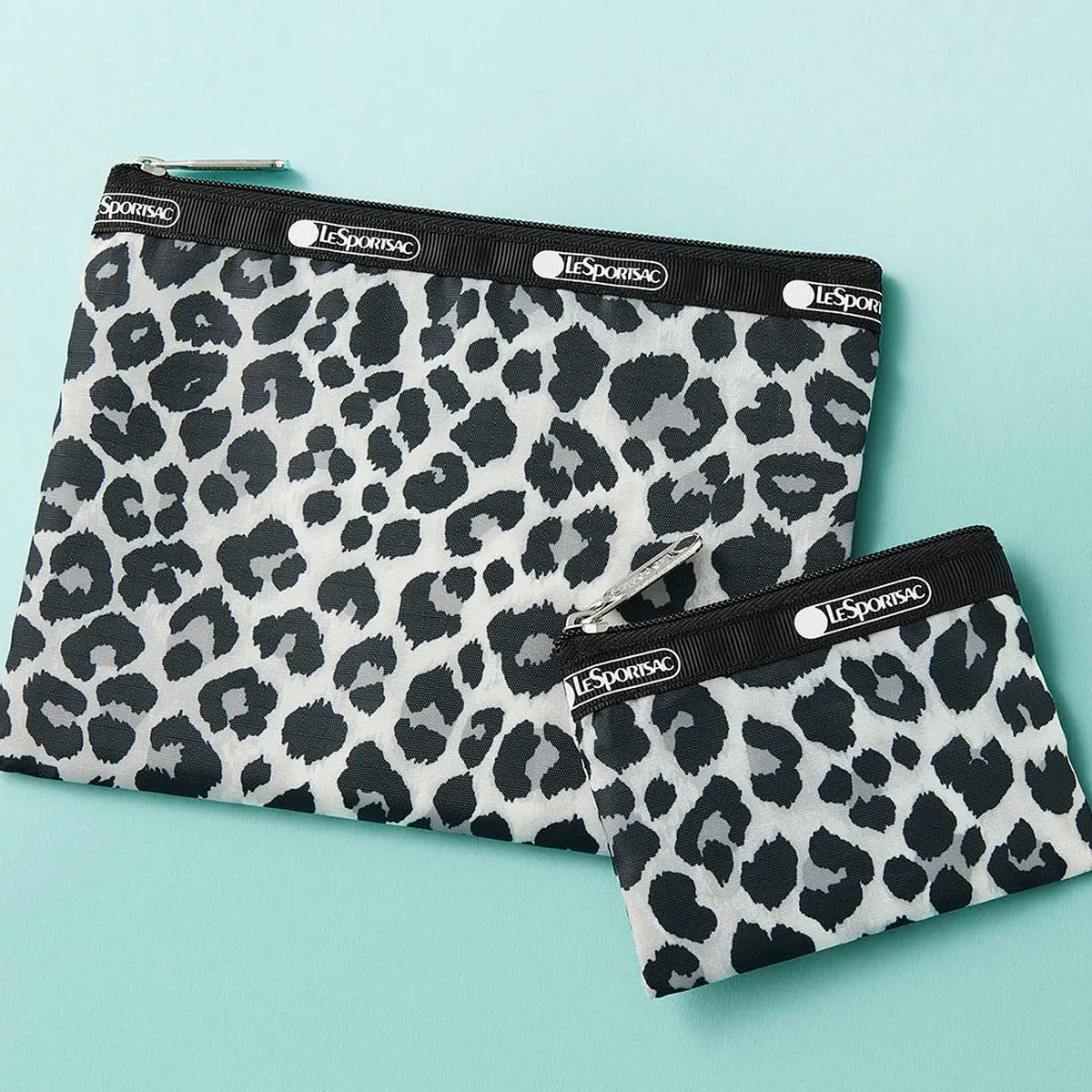 大小2つのポーチがセットで、例年よりさらに特別感がアップ。黒、白、グレーからなるレオパード柄はほどよく華やかで上品さもキープ。毎日使う小物類を入れるのにちょうどいいサイズ設定にもこだわった、エクラでしか手に入らない限定品!