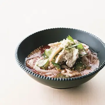トマトジュースを使った「トマトジュースだれ」を具材と麺に合わせた冷たい麺レシピ。調理でできるだけ火を使いたくない季節にうれしい!