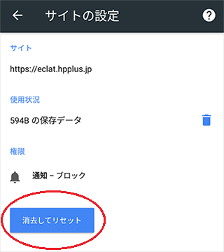 - ③ 設定詳細が表示されますので、「消去してリセット」をクリックしてください。