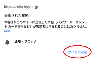 - ② 通知をブロックされている方は、設定が「通知 - ブロック」となっておりますので 「サイトの設定」をクリックしてください。