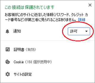 - ⑤ ブラウザ画面内にメッセージが表示されますので「許可」をクリックしてください。 設定は以上で完了です。