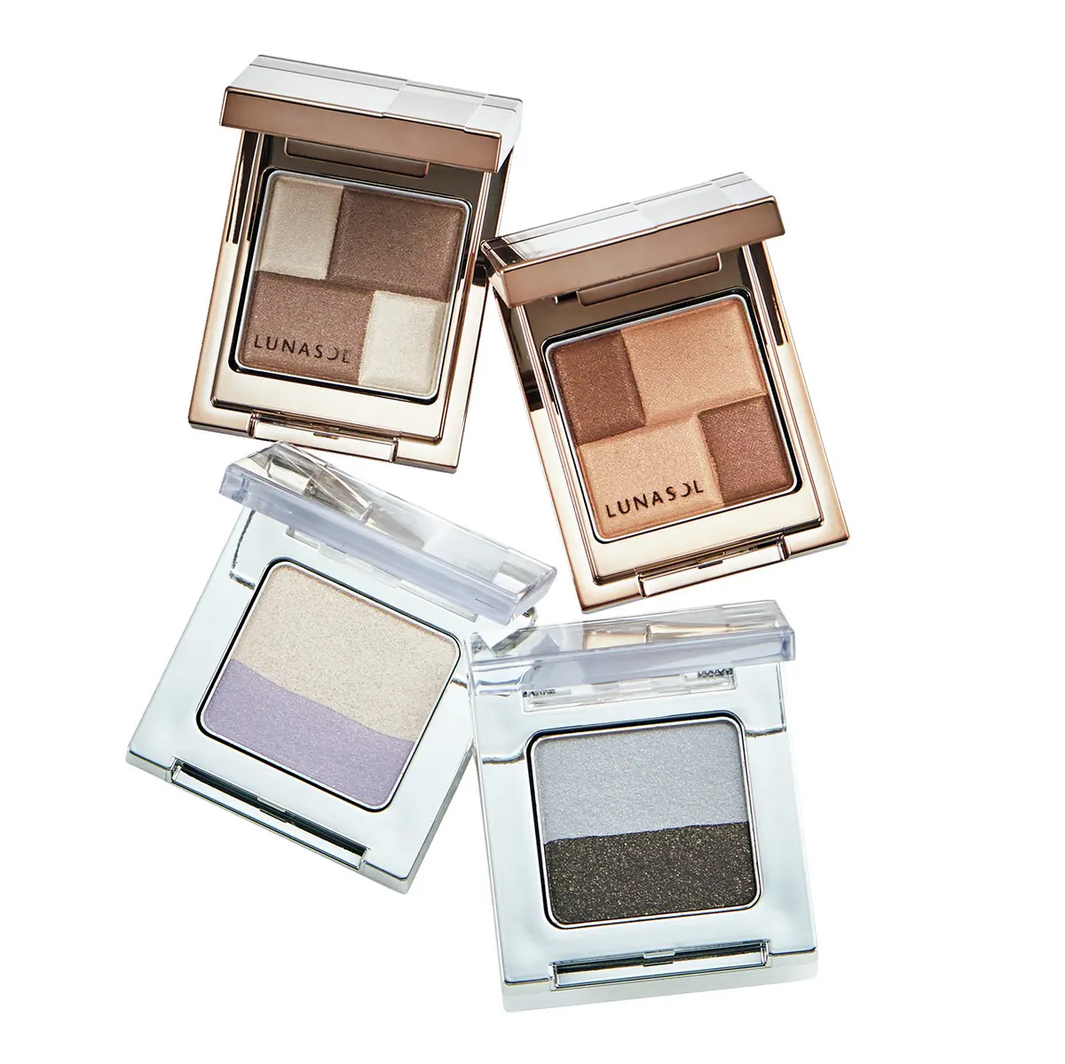 ルナソル メルティングカラーアイズ(右)EX02・(左)EX04(8/17限定発売)各¥3,000/カネボウ化粧品 デザイニング アイシェード(右)25・(左)12 各¥2,200/イプサ -
