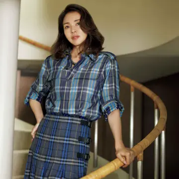 50代にふさわしいチェック・オン・チェックの着こなし【SHIHOがまとう“夏の青”】 -